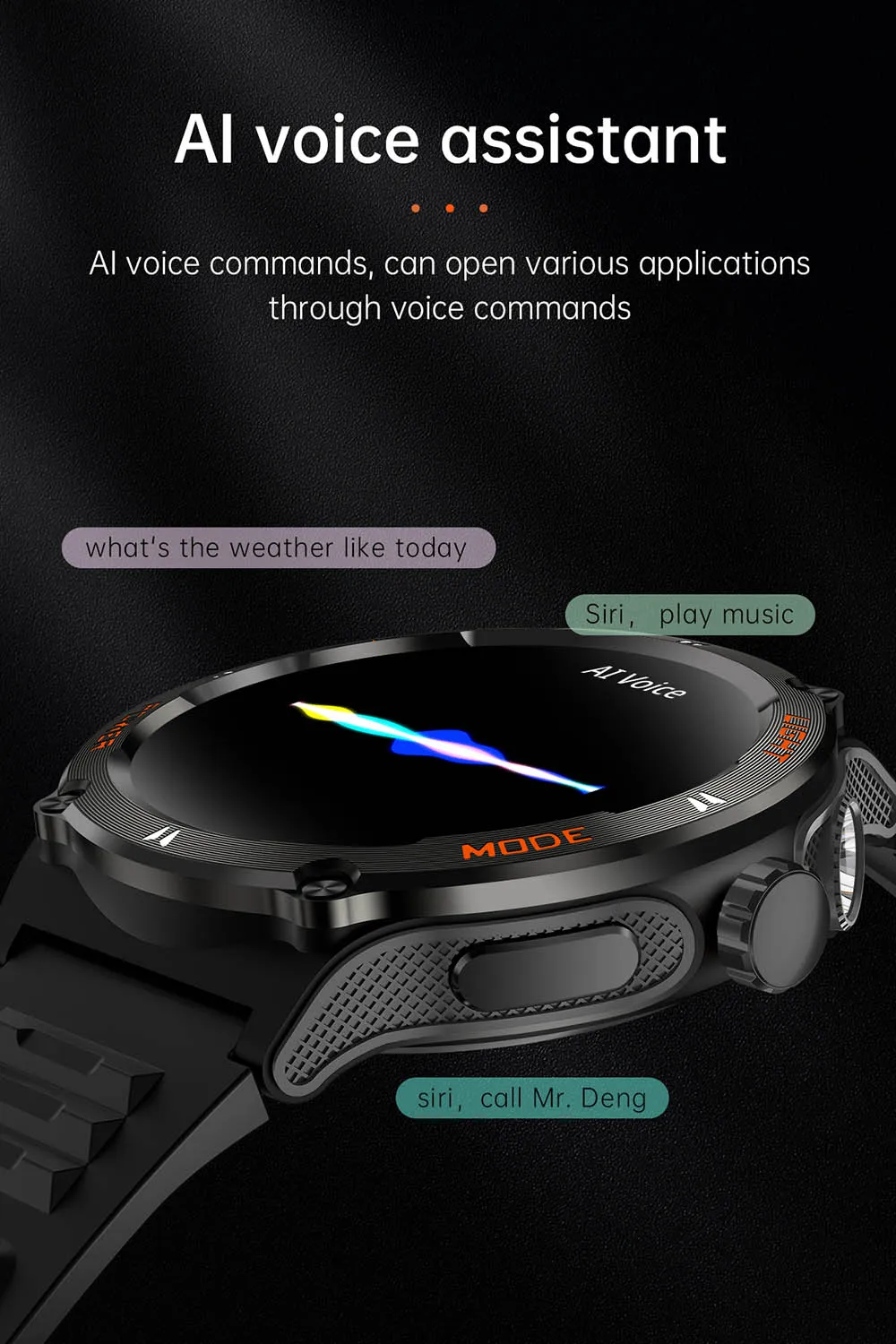 2024 Mens 3ATM Waterproof Health Smartwatch with Compass and Bluetooth Calling
