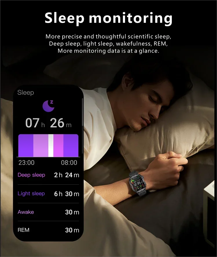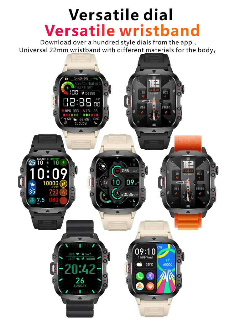 Yo, listen up! If you're looking to flex the ultimate combo of tech and style, peep this 2024 Rugged Military Black Smart Watch. This bad boy is not just about looks—it's built like a tank and can totally hang with whatever you throw at it. Whether you're tracking your fitness grind or diving into deep waters, this watch got your back. Integrated with an AI voice assistant and packed with a suite of health monitoring features like heart rate, blood oxygen, and sleep tracking, it's like having a personal trainer on your wrist 24/7. With an AMOLED display that's crisp enough to knock your socks off and a pro-level waterproof design, you know you're rocking a piece of tech that means business. Plus, the detachable band and the sleek, fine steel construction make it look as fly as you do.