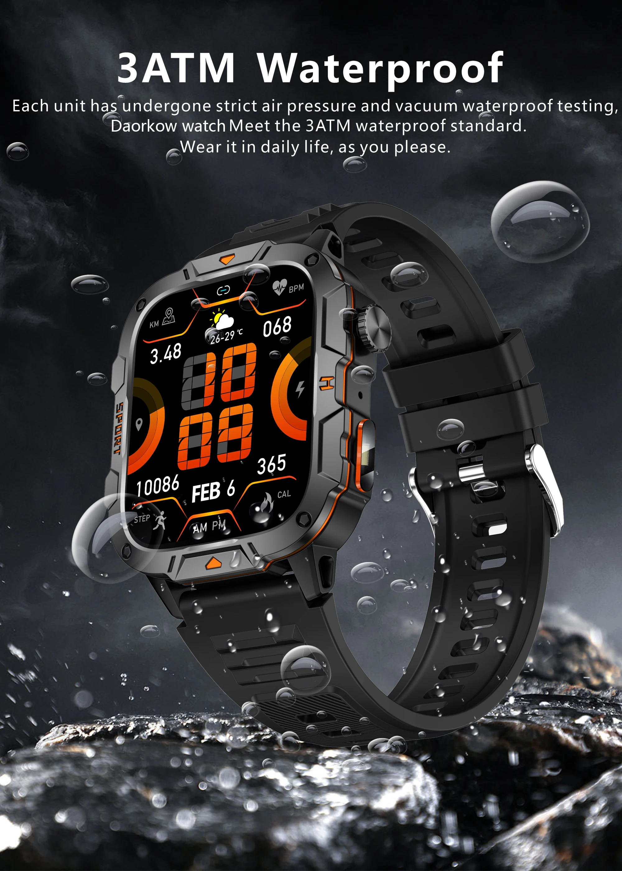 2024 Rugged Military Fitness Smartwatch for Android iOS