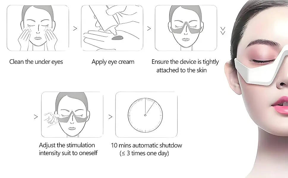 Eye Wrinkle Removal: LED Eye Beauty Device used to treat wrinkles around the eye socket area. Please rest assured to buy, the red light of this product will not cause any harm to the eyes.