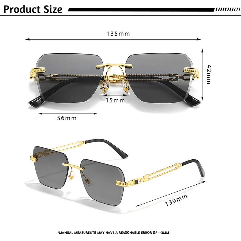 Diving deeper into the sleek design, these sunnies emerge with a rimless look and an alloy frame that seamlessly blends lit aesthetics with maximum durability. The lenses, crafted from premium plastic, guard your gaze with legit UV400 protection, so you’re shielded from the haterade coming from the sun. CATERSIDE hasn't slacked a bit on comfort either; these glasses sit like a dream, making them perfect for all-day wear without leaving marks. With 56mm width and 42mm height lenses, this pair boasts big energy that suits any face shape and any gender. Perfect for adults, these sunglasses are your quintessential weapon for keeping the maverick spirit alive all year round.
