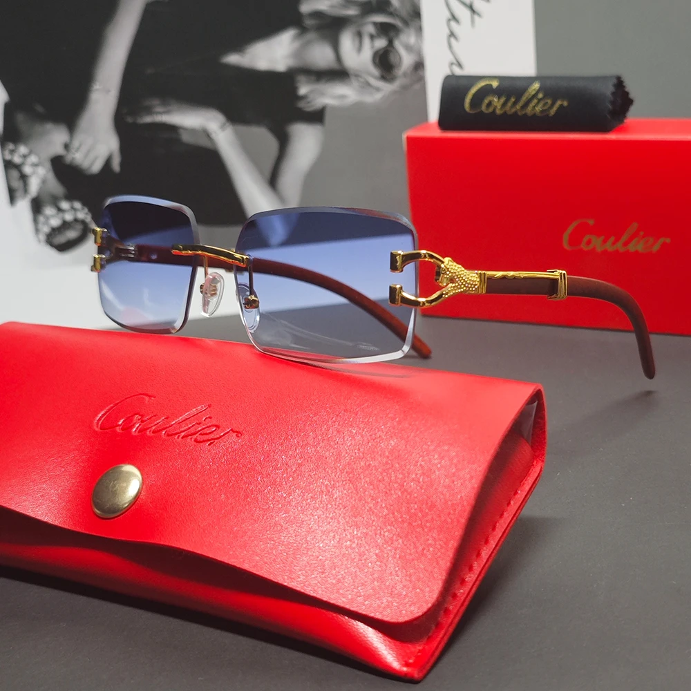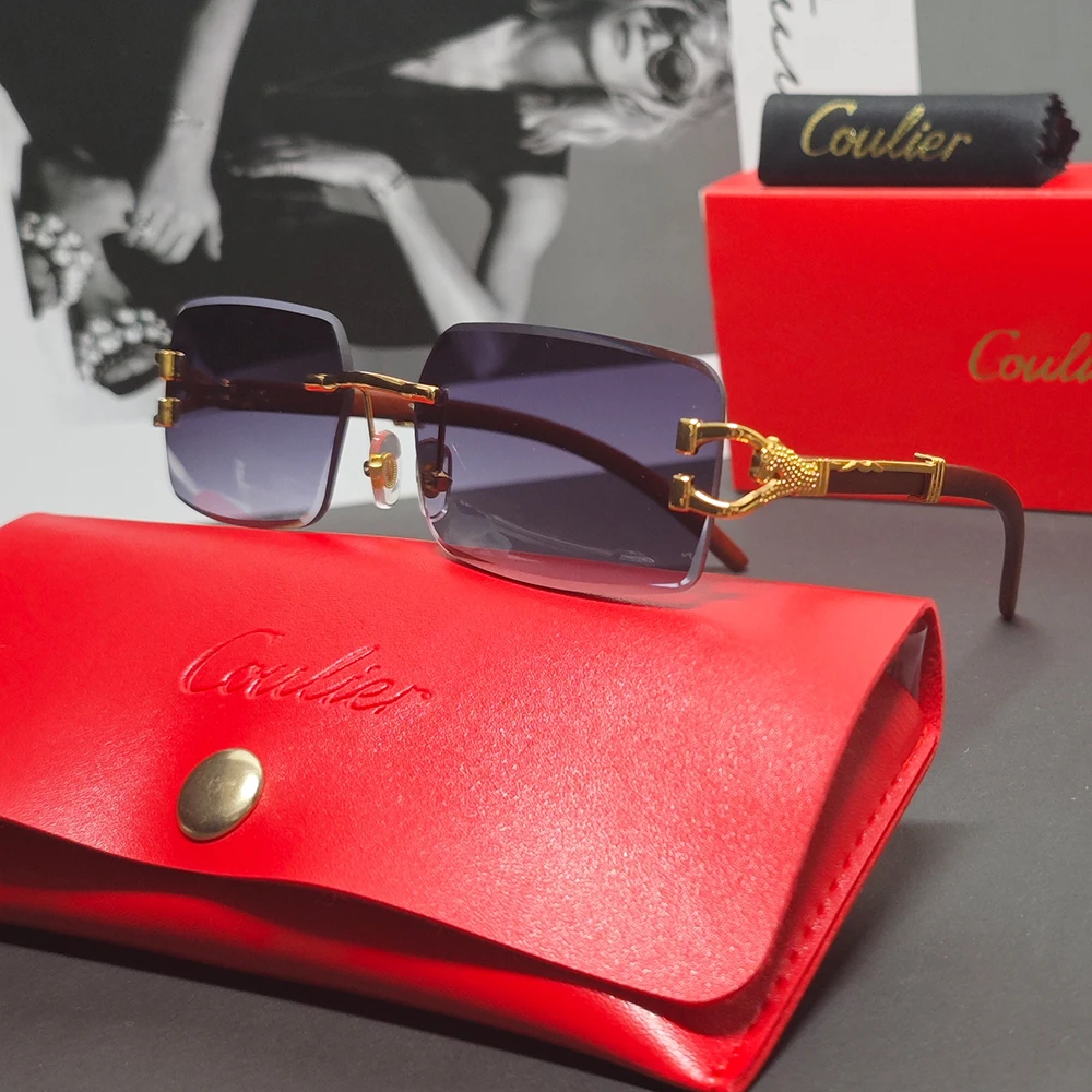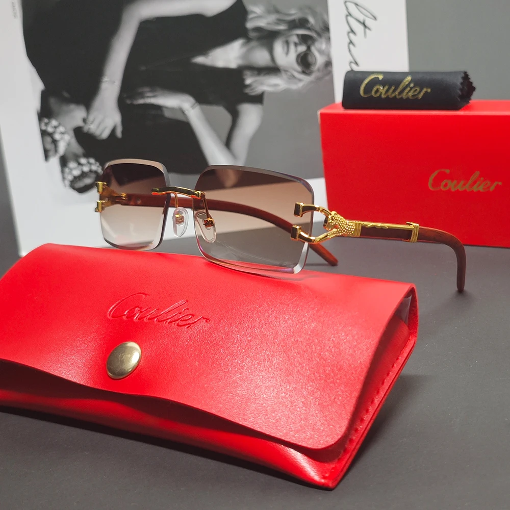 COULIER Frameless Vintage Leopard Luxury Sunglasses for Women