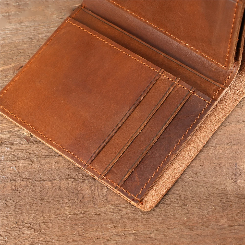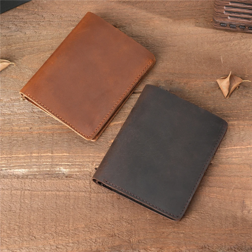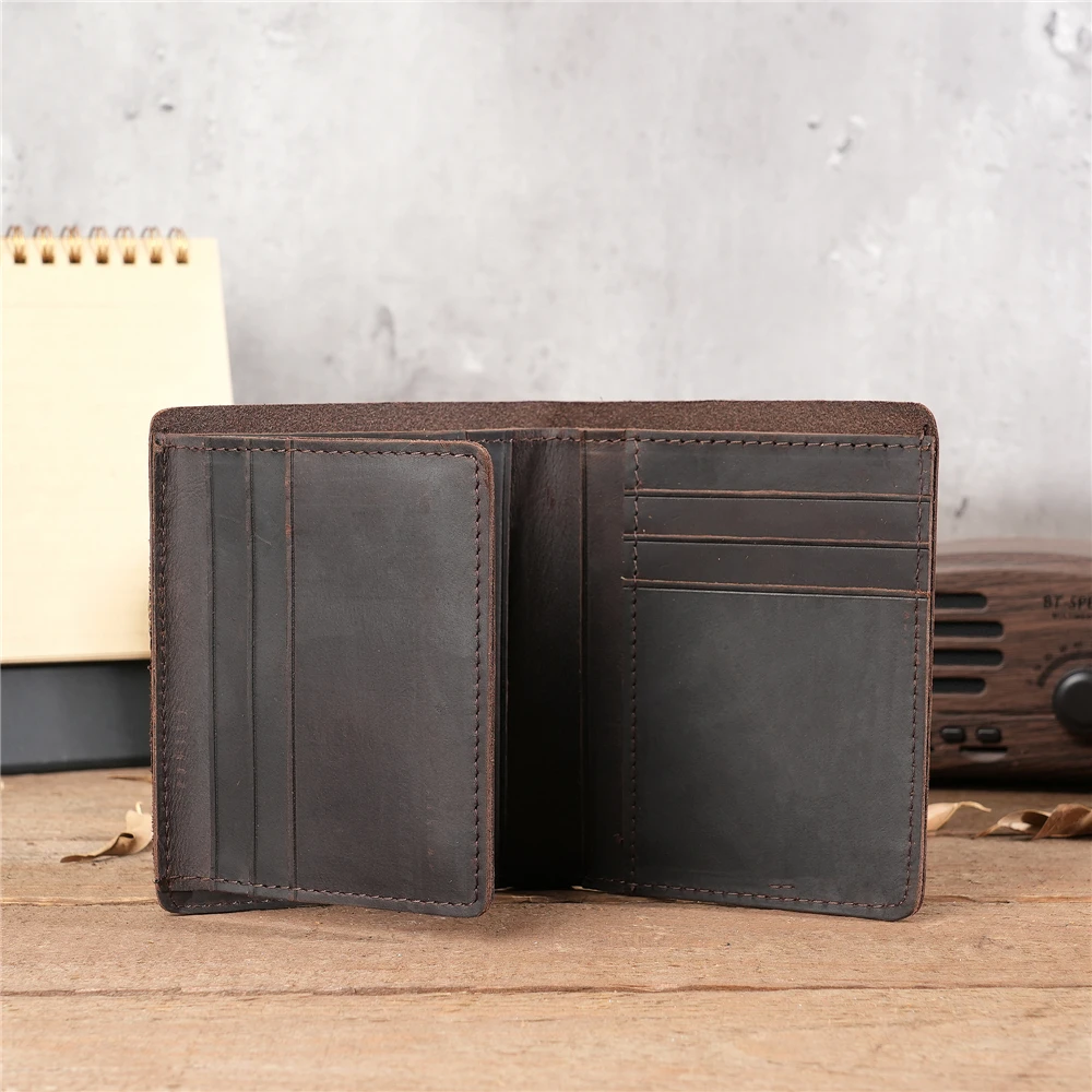 Genuine Leather Mens Slim Wallet Simple Solid Foldable