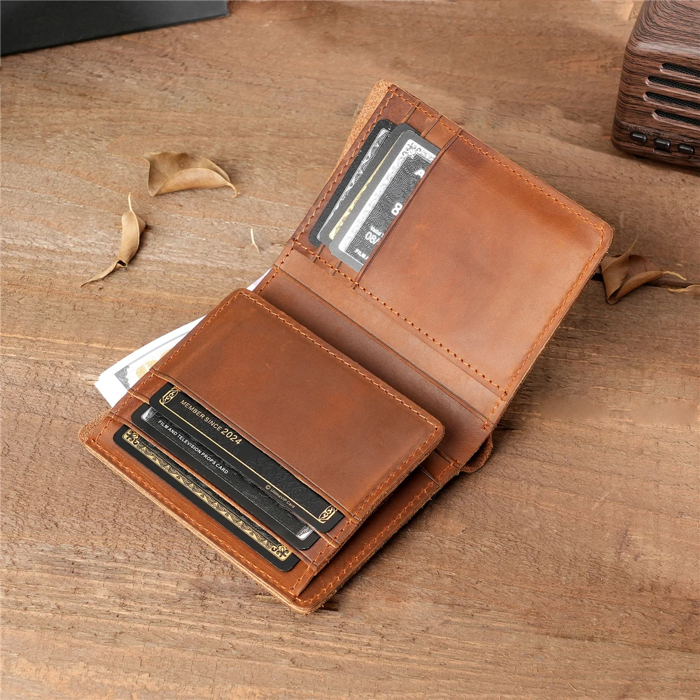 Churned from luxe crazy horsehide, this gem captures the essence of durability and fashion-forward thinking. With a generously streamlined design, it ditches the zipper drama, ensuring quick access when you're out for that late-night boba run. This wallet isn't just about holding your cash and cards; it's about making a statement. Yep, it's slim, it's chic, and genuinely leather-made—all-day-every-day vibes!