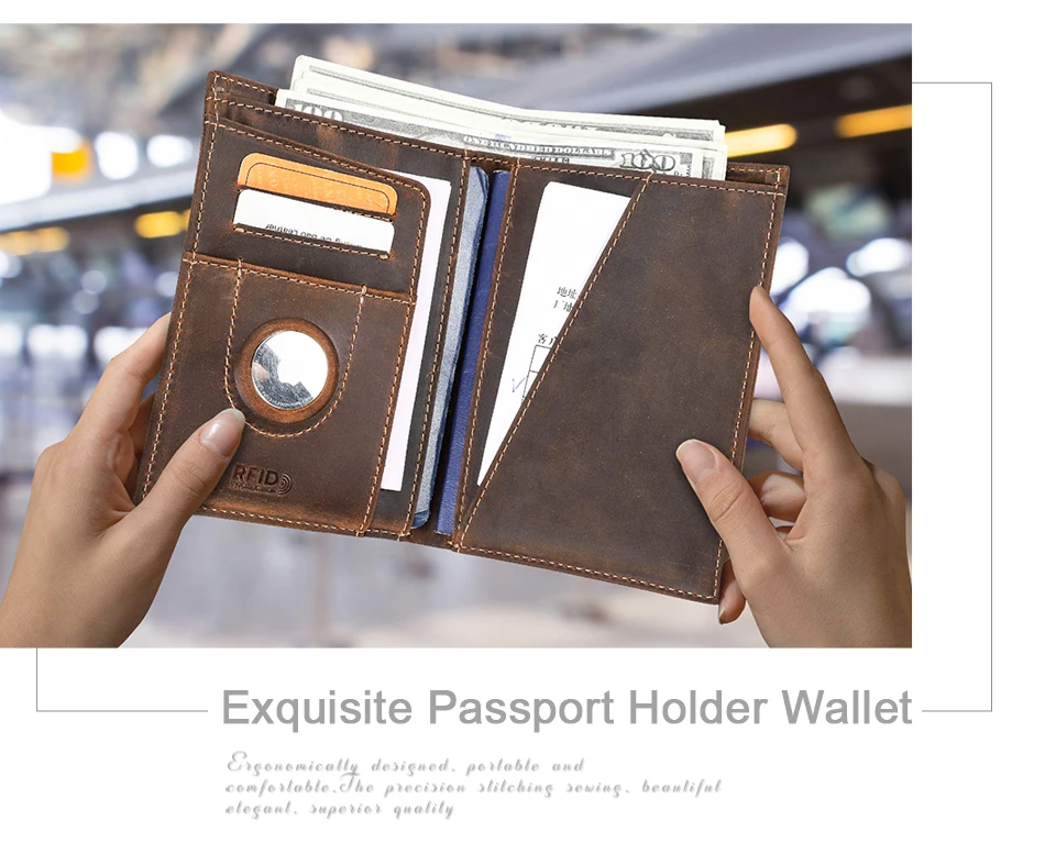 Genuine Leather Passport Wallet with Airtag RFID Protection