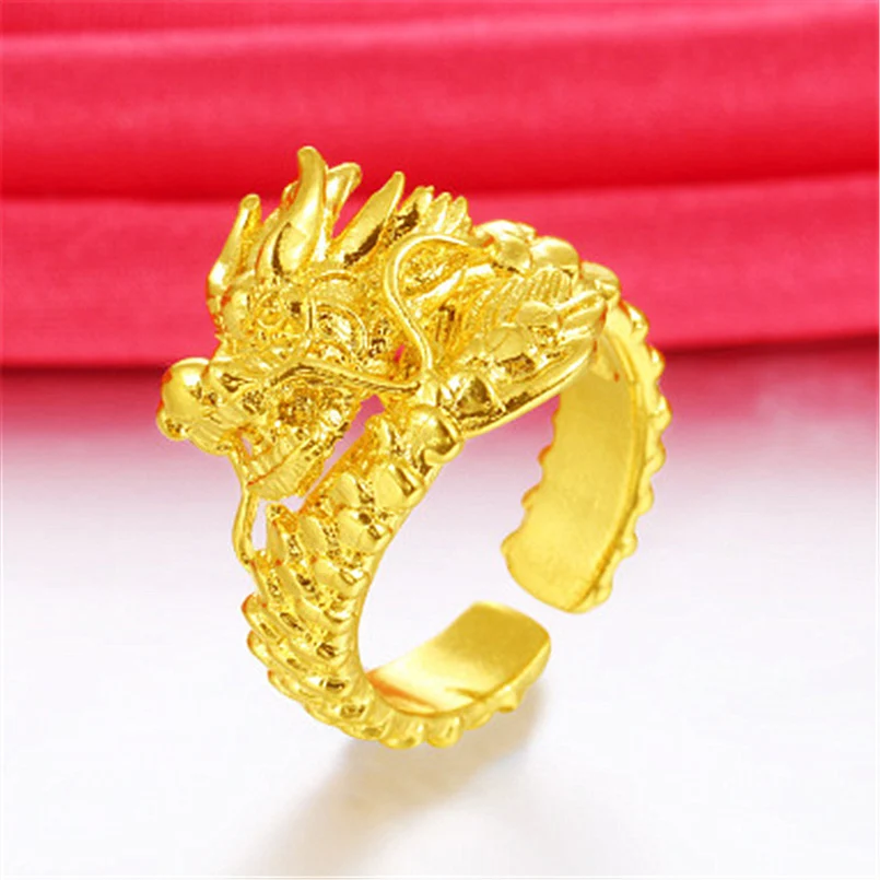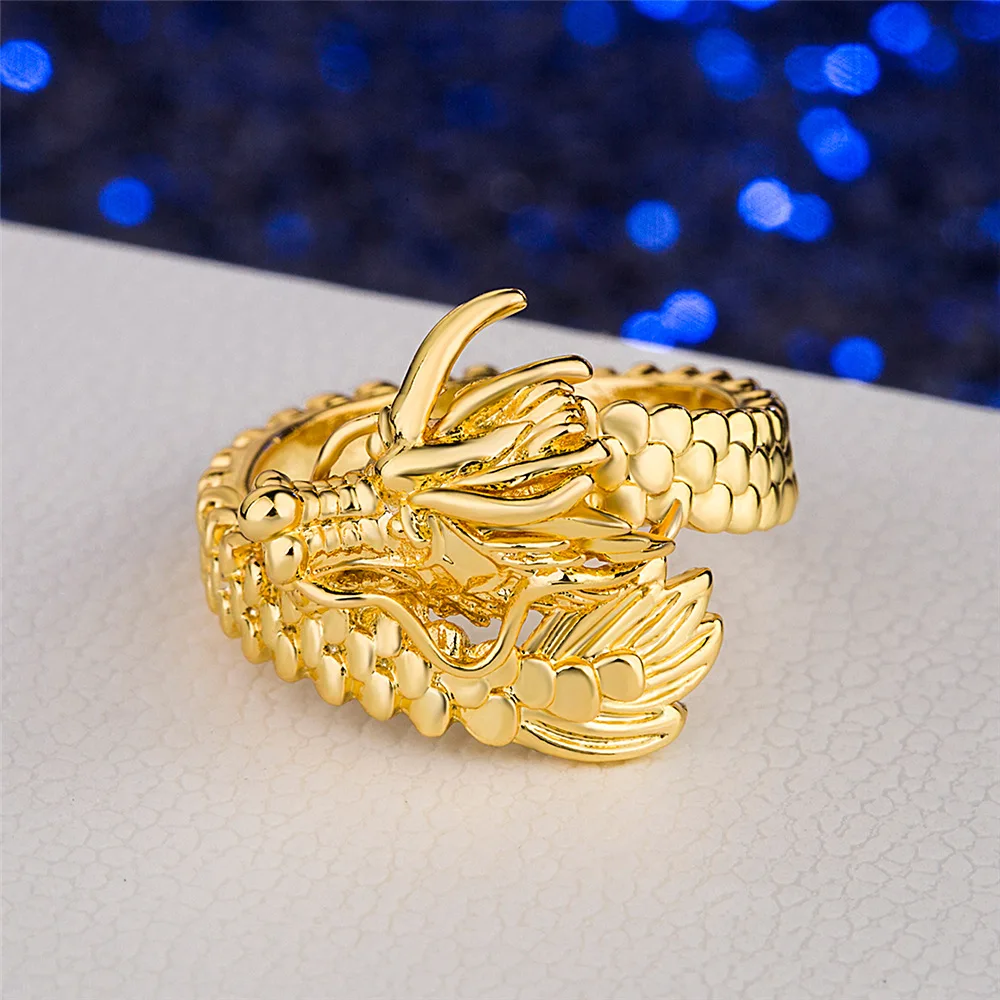 Gold Dragon Head Punk Ring for Men Gift Edition