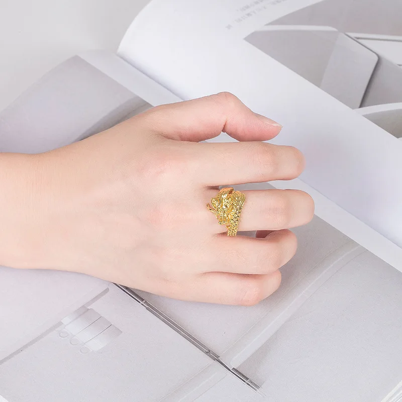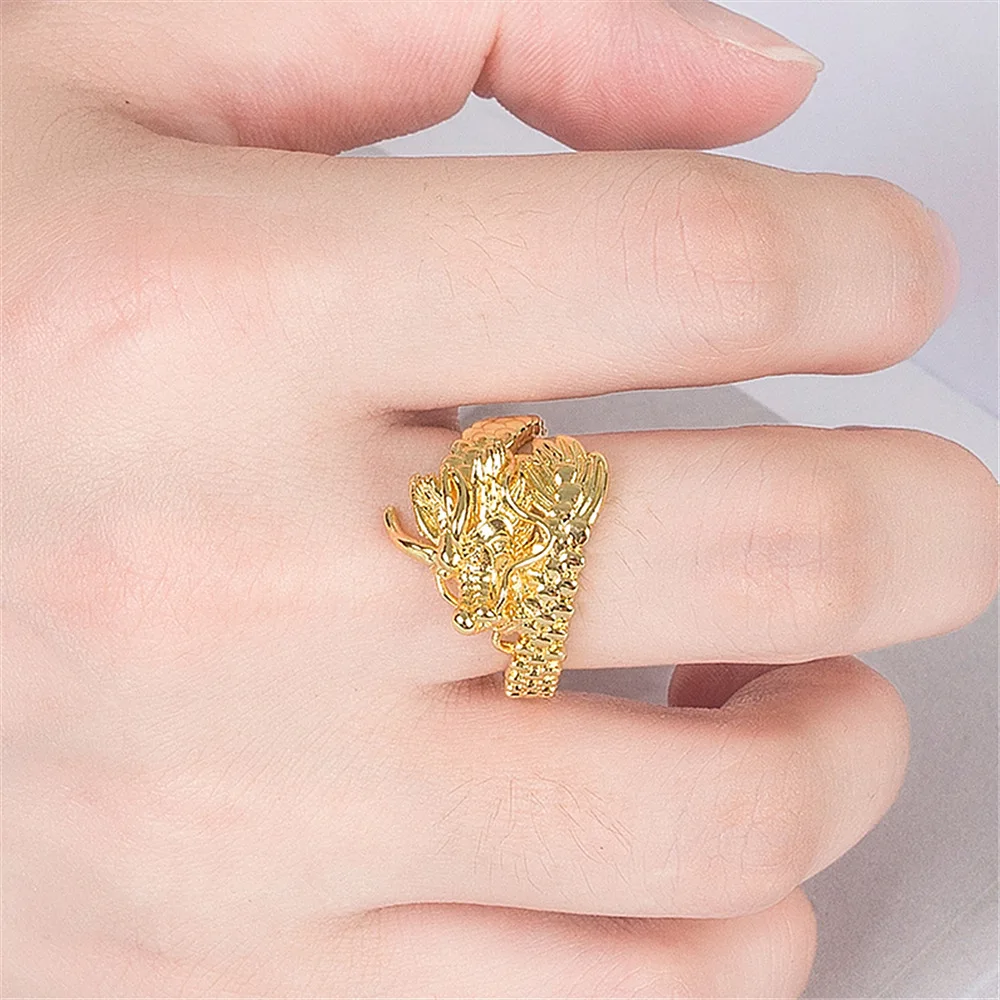 Feel like royalty every time you slip it on, knowing it's crafted with extra care and designed exclusively for mavens who know the power of a little bling. The perfect gift edition for men who are out to slay. Pair it with your slickest gear and let this statement piece speak for itself whether standing as your go-to wedding ring or bringing some extra flair to weekend fits. The Gold Dragon Head Punk Ring isn't just about style; it's the vibe you've been missing in your accessory lineup. Brace yourself for the compliments – they're about to pour in!