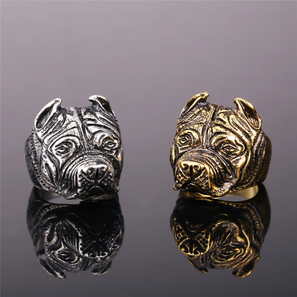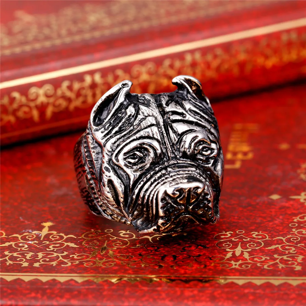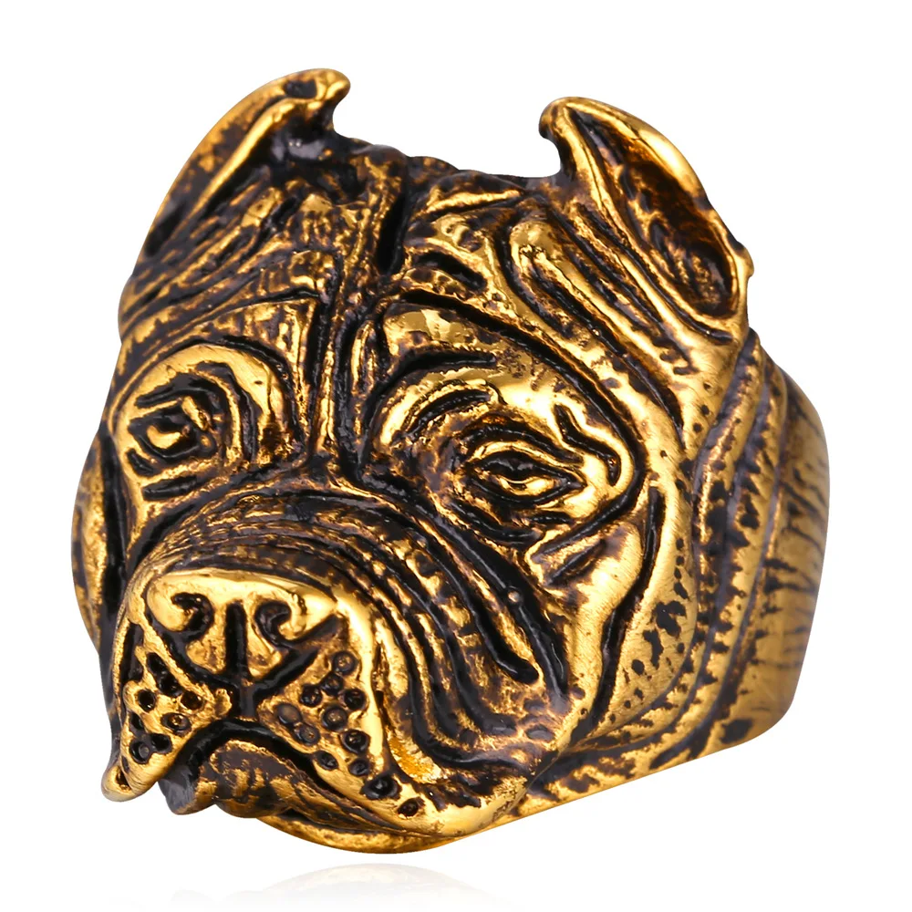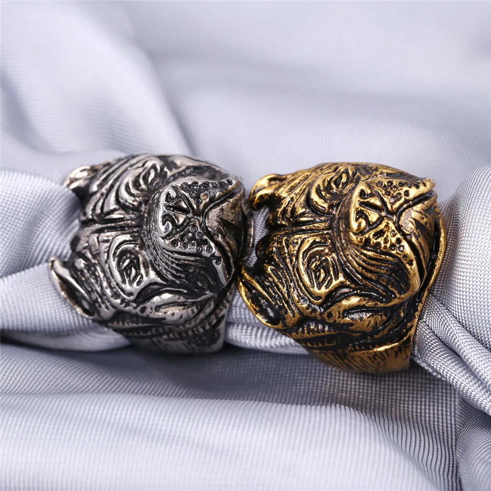 Gold French Bulldog Punk Ring Mens Vintage Style Jewelry