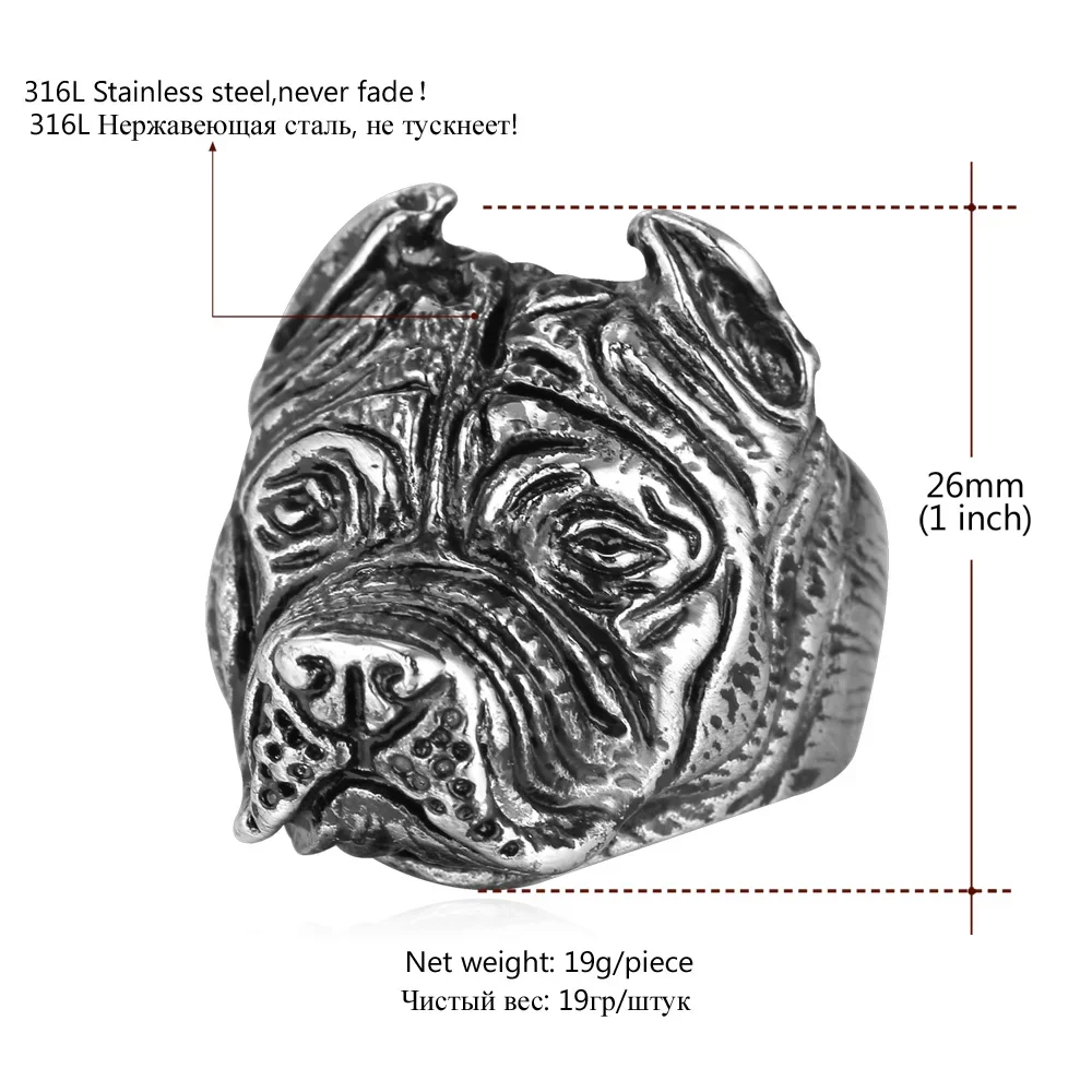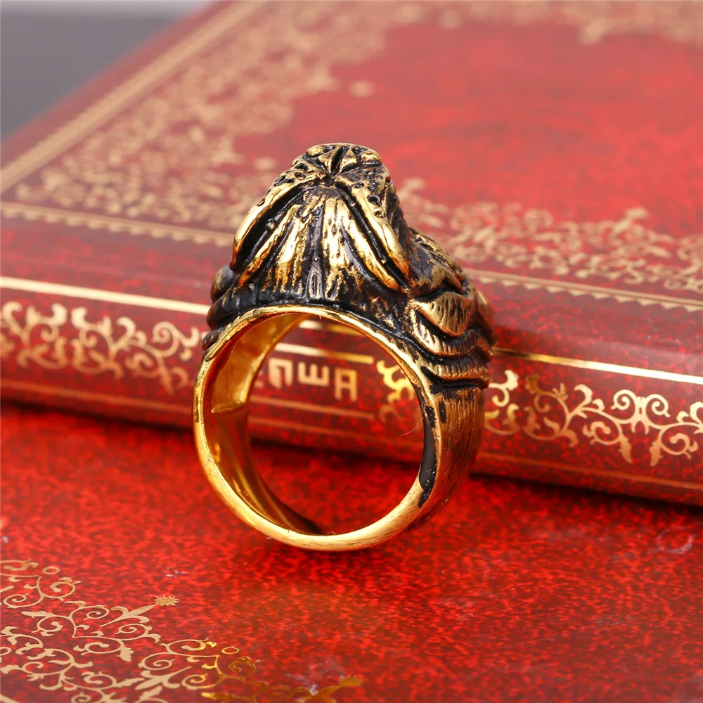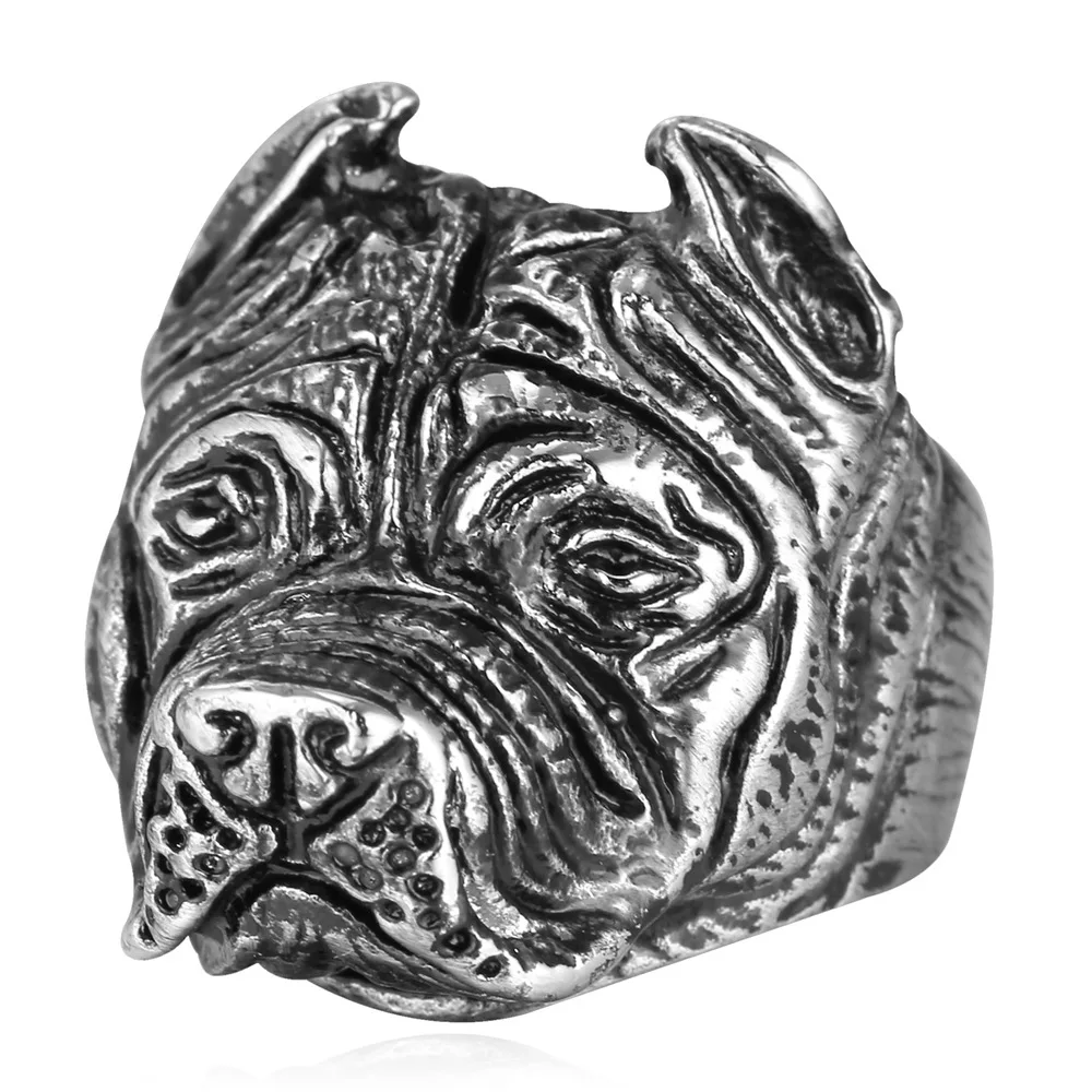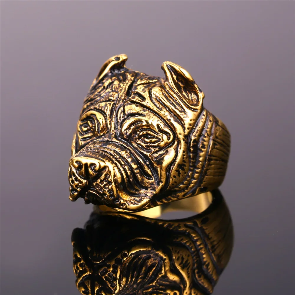 Gold French Bulldog Punk Ring Mens Vintage Style Jewelry