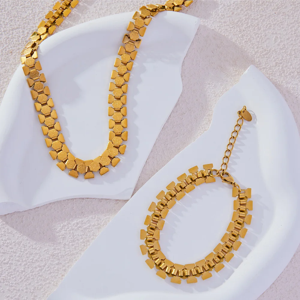 Liora Stainless Steel Polygonal Chain Necklace Bracelet Set