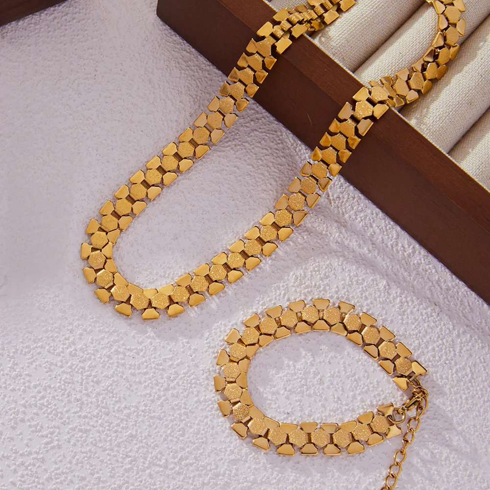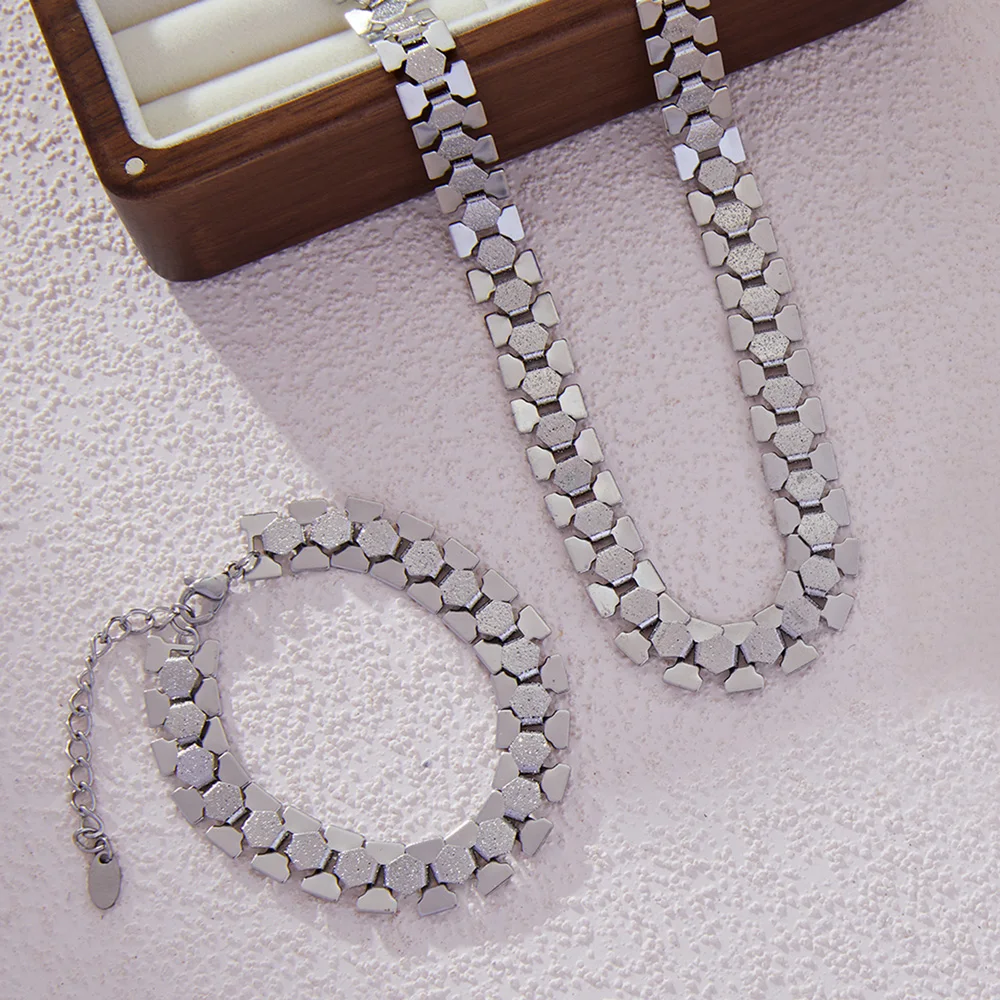 Liora Stainless Steel Polygonal Chain Necklace & Bracelet Set