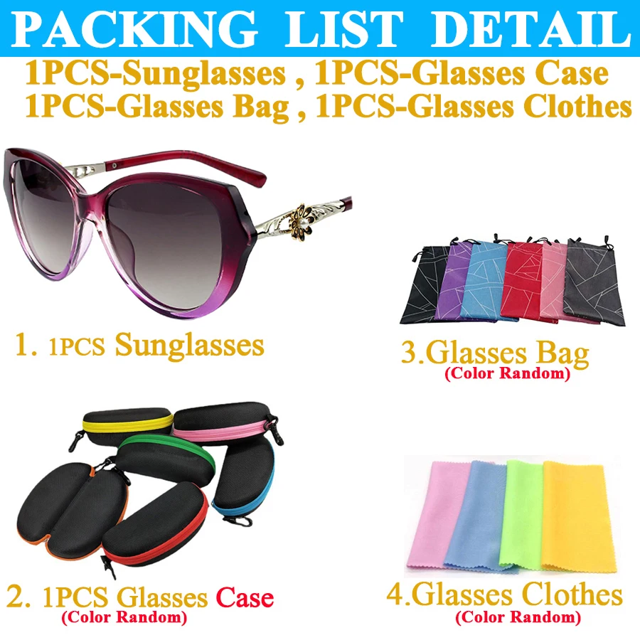 Product List(4PCS): Sunglasses, Glasses Case, Glasses Clothes, Glasses Bag.