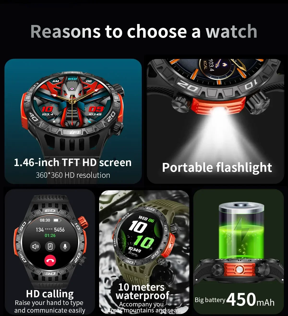 Mens Camouflage Smartwatch BT Calling 146 Display Free Shipping