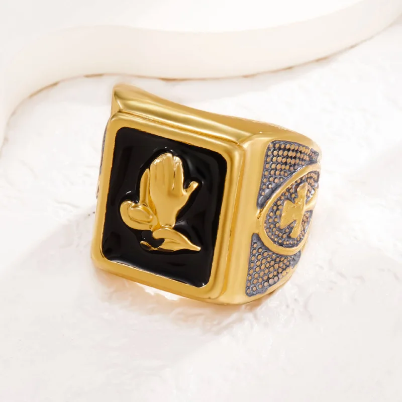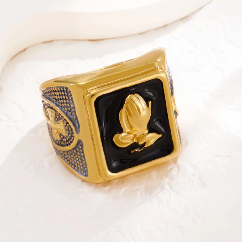 Mens Elegant Prayer Hand Fashion Ring Wholesale