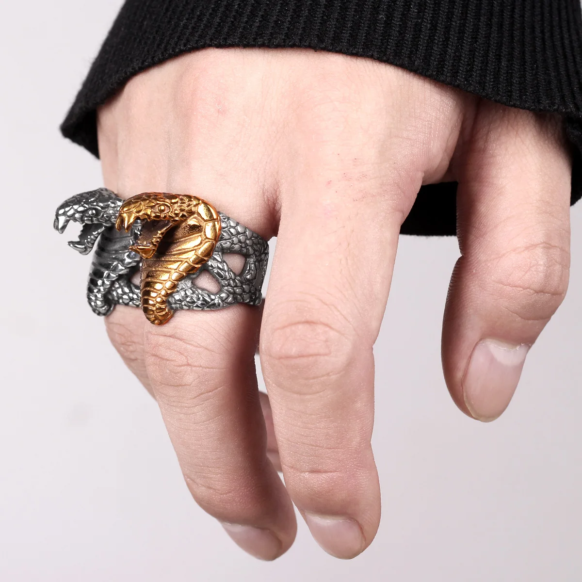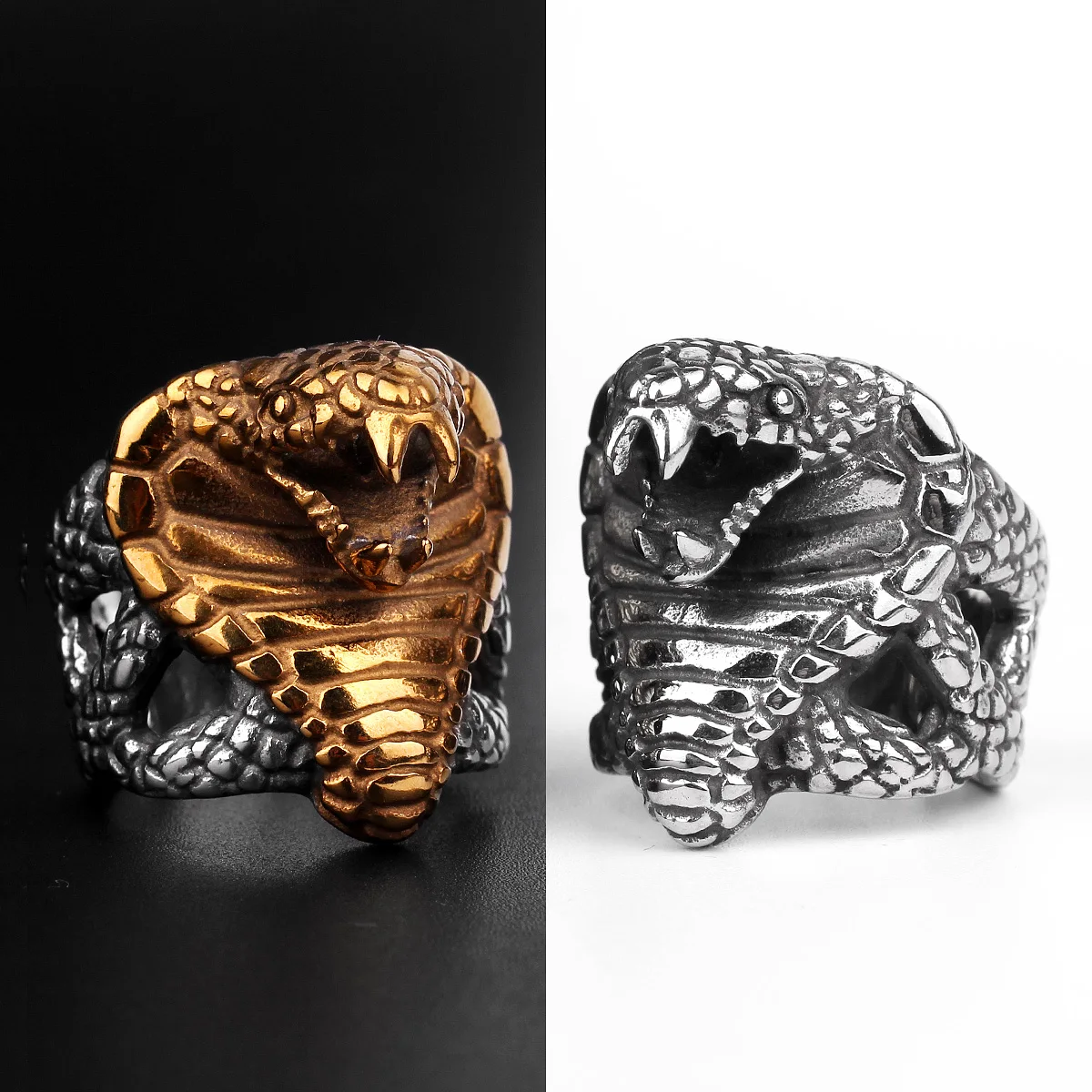đĽ Men's Stainless Steel Cobra Snake Punk Ring: Dive into the Rebel Vibe