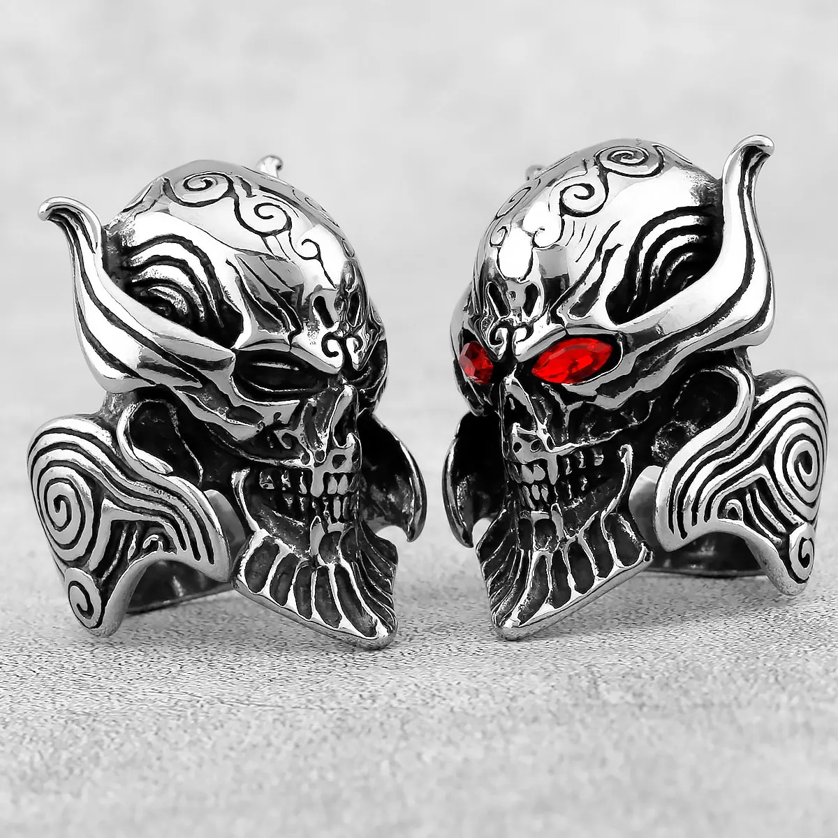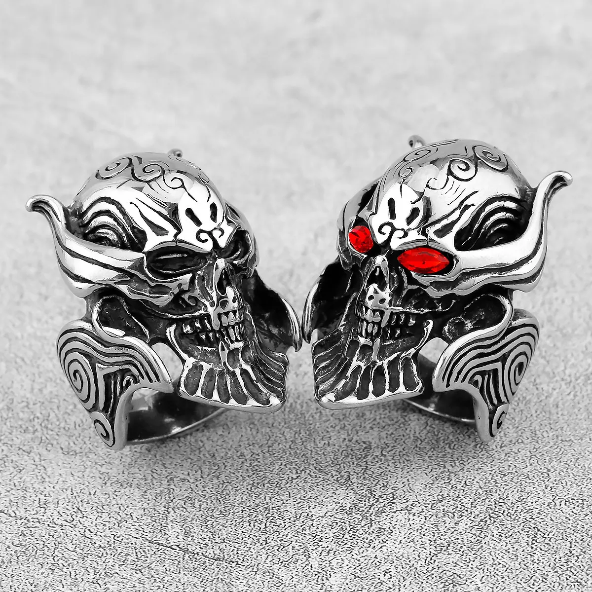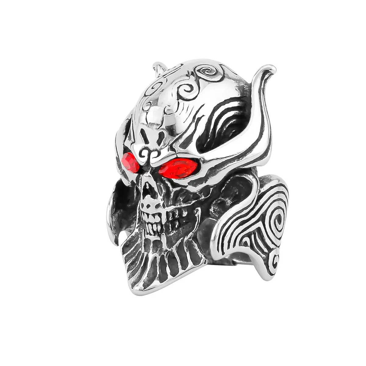 Mens Vintage Punk Ring RedEyed Crystal Skull Design