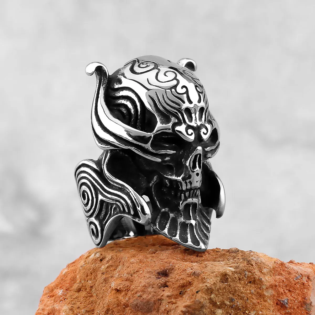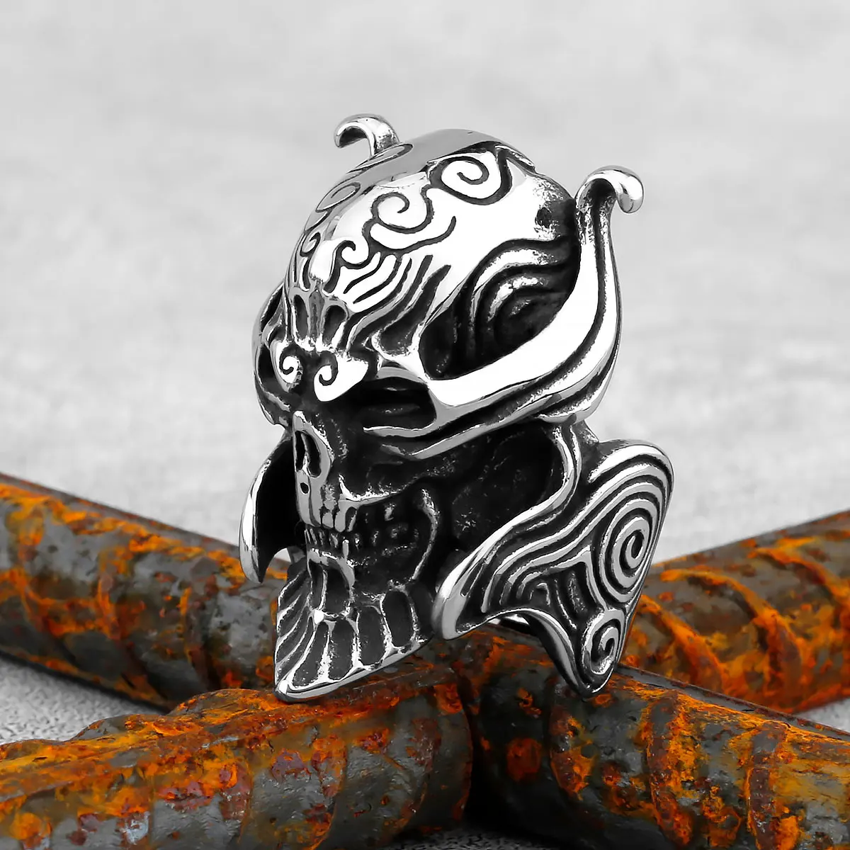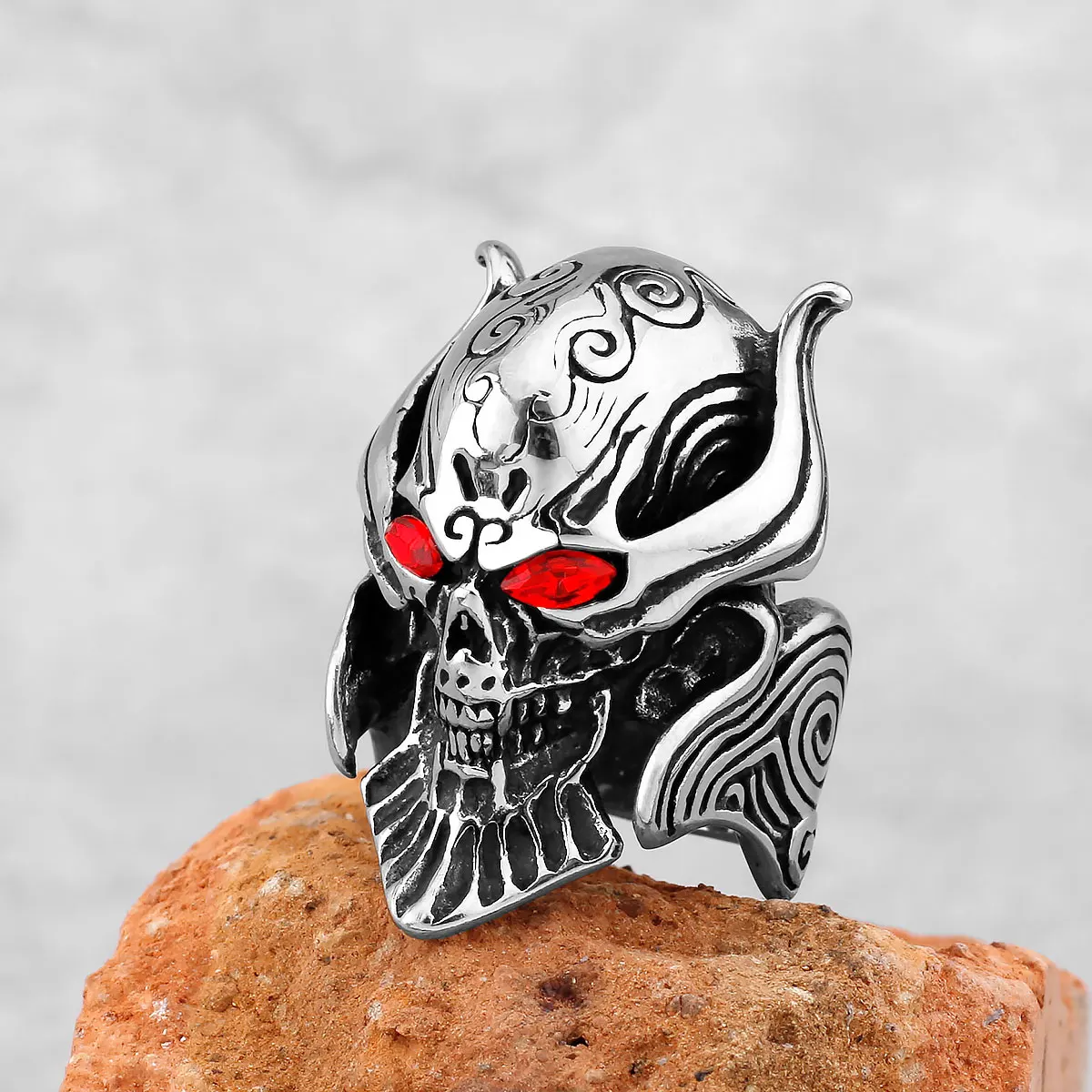 Mens Vintage Punk Ring RedEyed Crystal Skull Design
