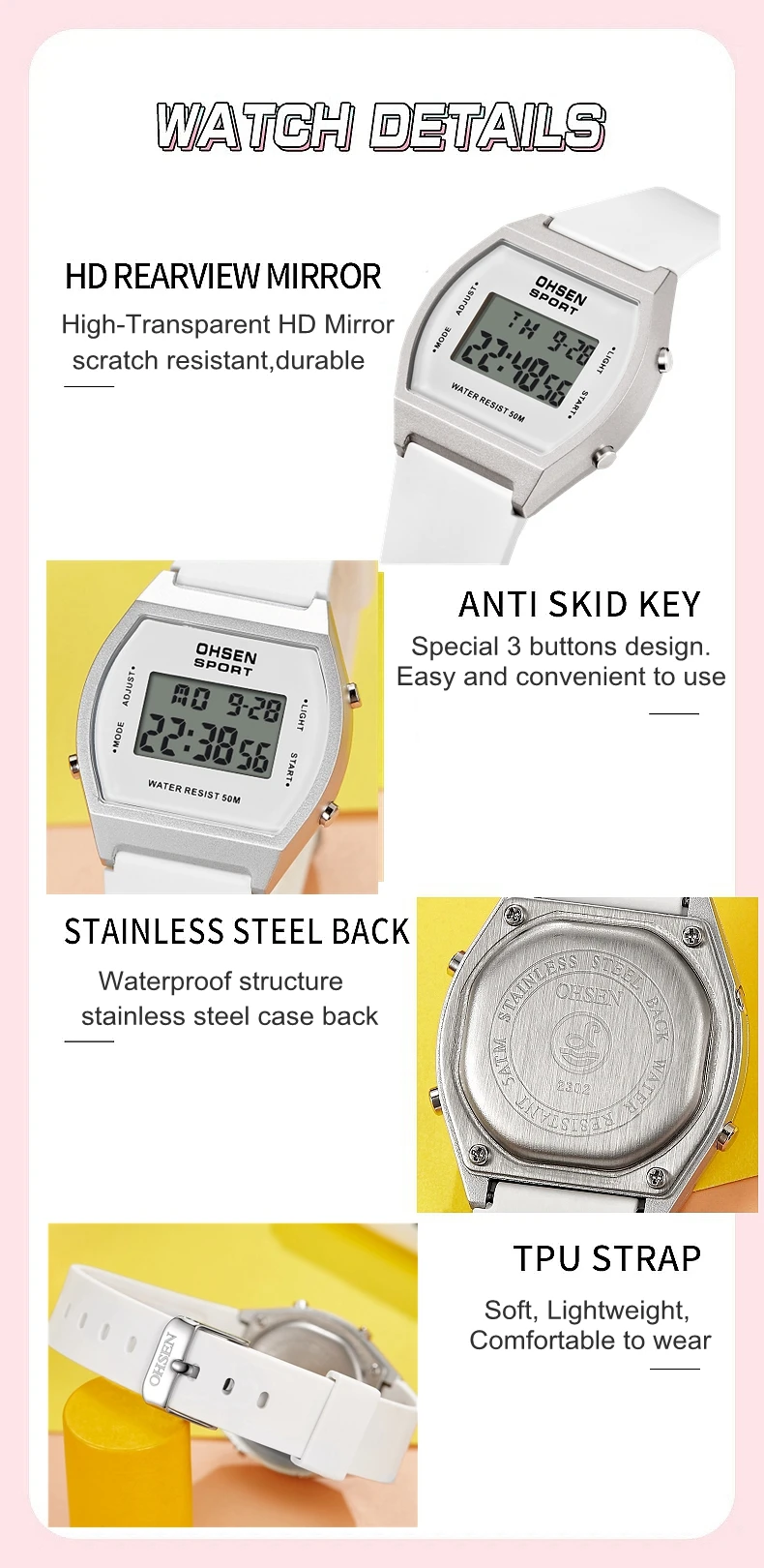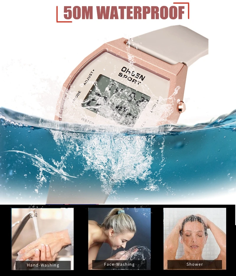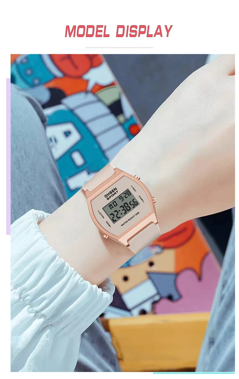 Yo, if you're living life in the fast-lane and vibing to that aesthetic hustle, the UltraThin Pink Waterproof Digital Sport Watch is your ultimate wingman. 🚀 This watch isn't just a vibe; it's a movement. Perfectly blending fashion and function, it's got that digital drip that pops on the 'gram and irl too. With its sleek square case and a dial diameter that smacks of elegance and simplicity, this bad boy's got it all. Whether you're hitting up the beach, surviving that epic rainstorm, or just flexing at school, its 5Bar water resistance keeps it unbothered and ready for action.
