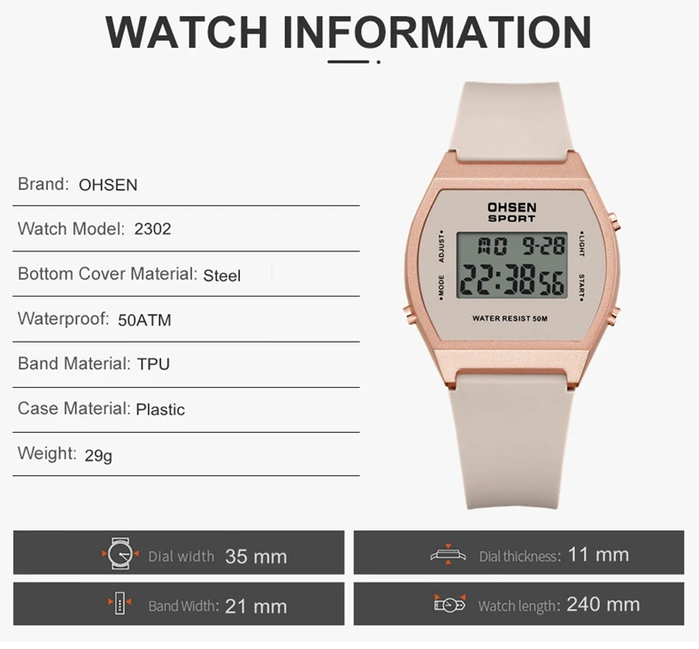 - Ultra-thin Digital watch: Fashion design, ultra thin watch case, only 29g , more comfortable