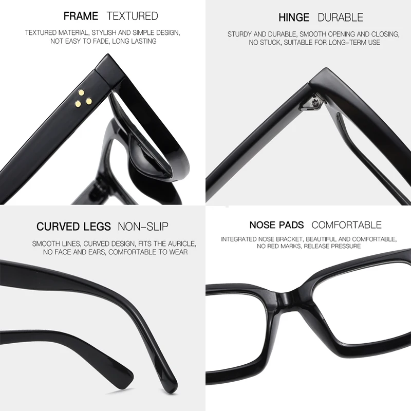 Say goodbye to squinting and hello to clear vision with RUOBO AntiFatigue Square Reading Glasses! Designed for the movers and shakers of Generation Z, these frames bring peak aesthetic and function to your life. Whether you’re smashing your latest work report or indulging in a chill Netflix sesh, these glasses got your back. Rocking a sleek square design, they're available in a range of trendy colors like Dark Blue, Leopard, Coffee, Black, Transparent, and Red, perfect for every mood and ‘fit. Crafted with a durable plastic frame and acrylic lenses, these reading glasses promise you a lightweight yet durable accessory to add to your daily hustle. With hype-inducing anti-fatigue tech, they’re your digital-savvy best friend, ensuring your eyes stay fresh even after binge-watching your latest obsession.