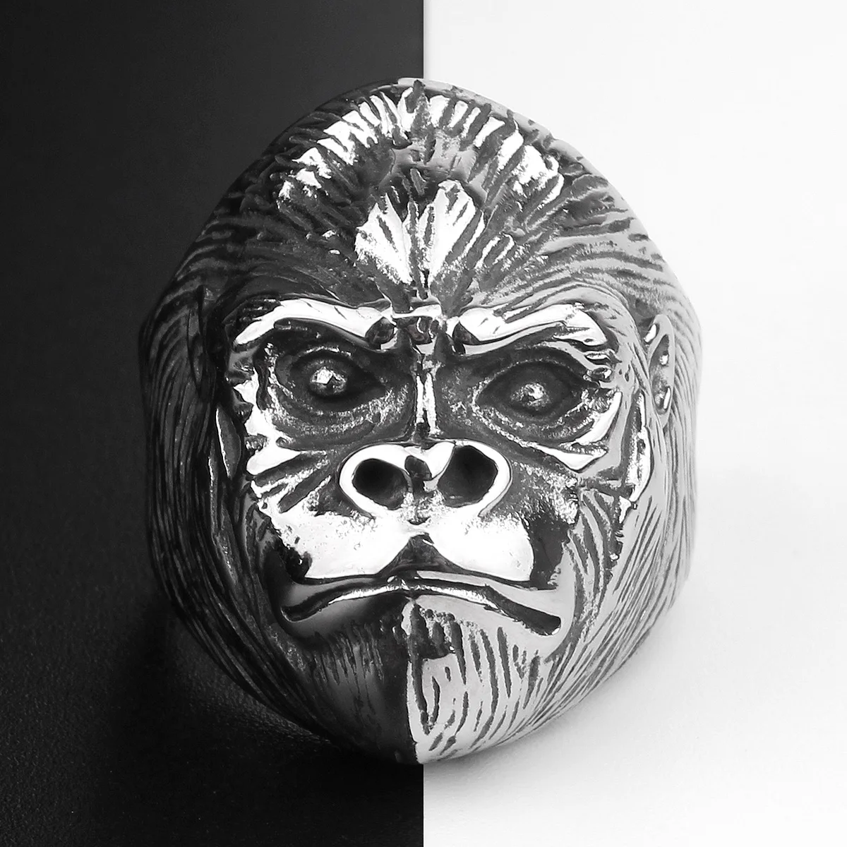 ## The Wild Stainless Steel Gorilla Monkey Ring