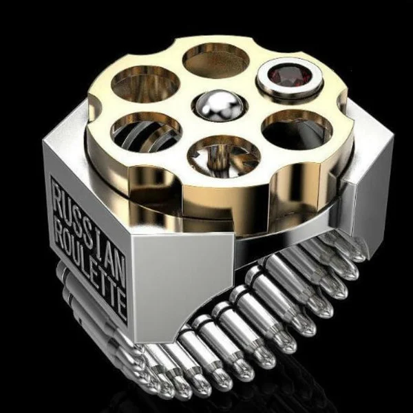 Steampunk Red Crystal Revolver Bullet Roulette Ring Wholesale
