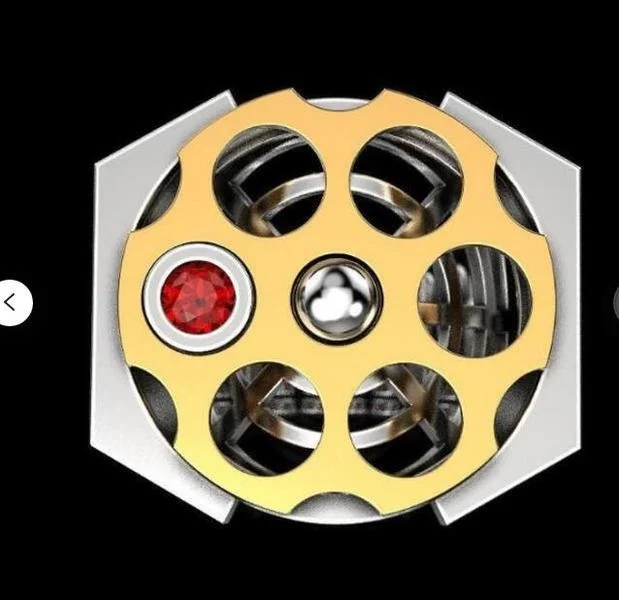 ## Steampunk Red Crystal Revolver Bullet Roulette Ring