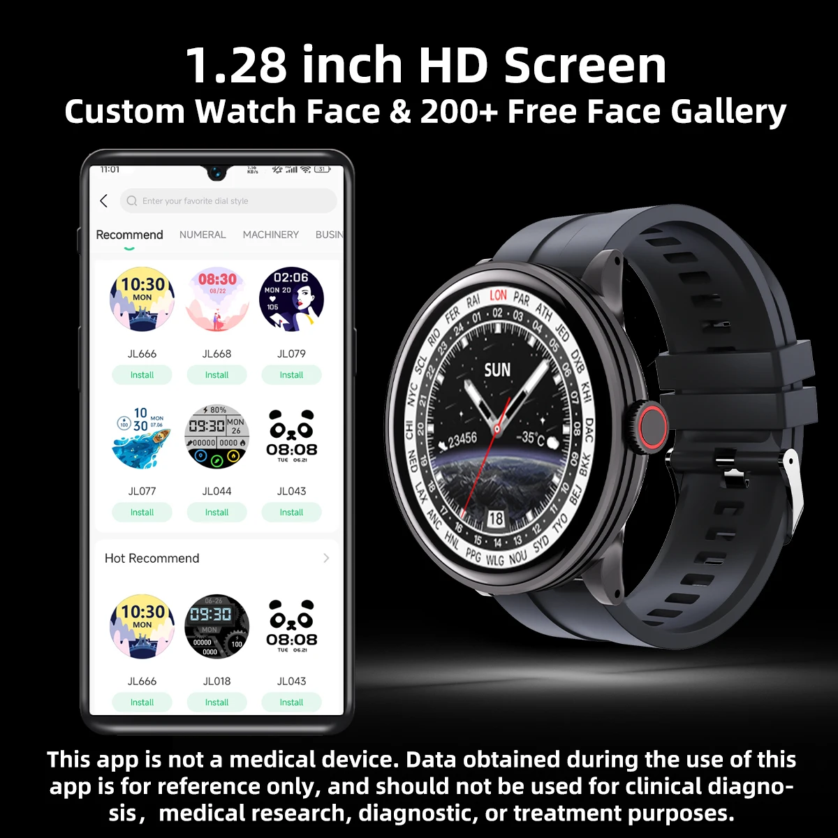 Hey fam, let's talk about leveling up your wrist game with a dope gadget that's gonna keep you on your A-game! Meet the Unisex 128 Smartwatch, where style meets tech in a major way. This isn't just any time-teller or low-key wrist candy; it's the ultimate blend of futuristic flair in a sleek and smart circle-shaped wonder. Designed for adults who want to crush goals, stay connected, and flex their fitness with killer tech, this smartwatch is packed with epic features.
