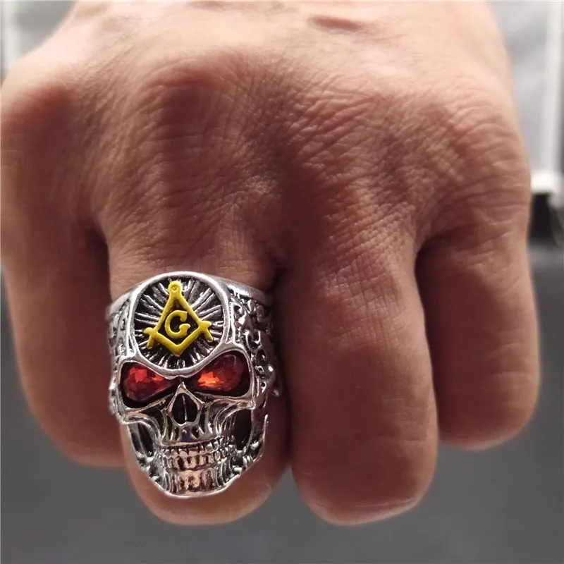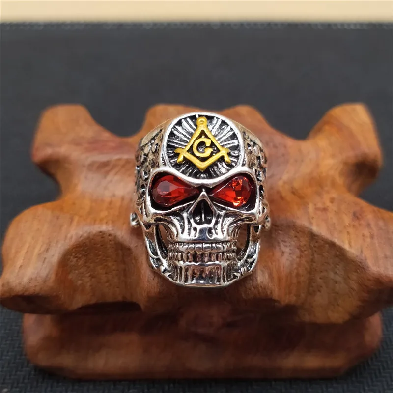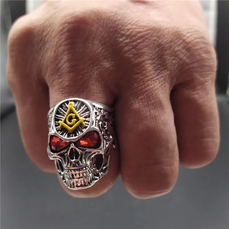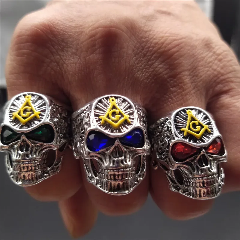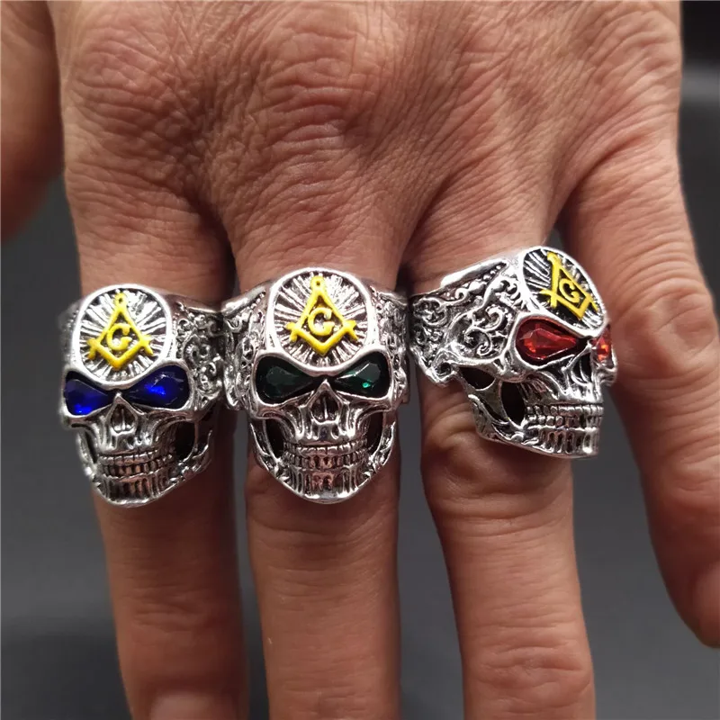Unisex Punk Style Skull Masonic Ring with Colorful Eyes
