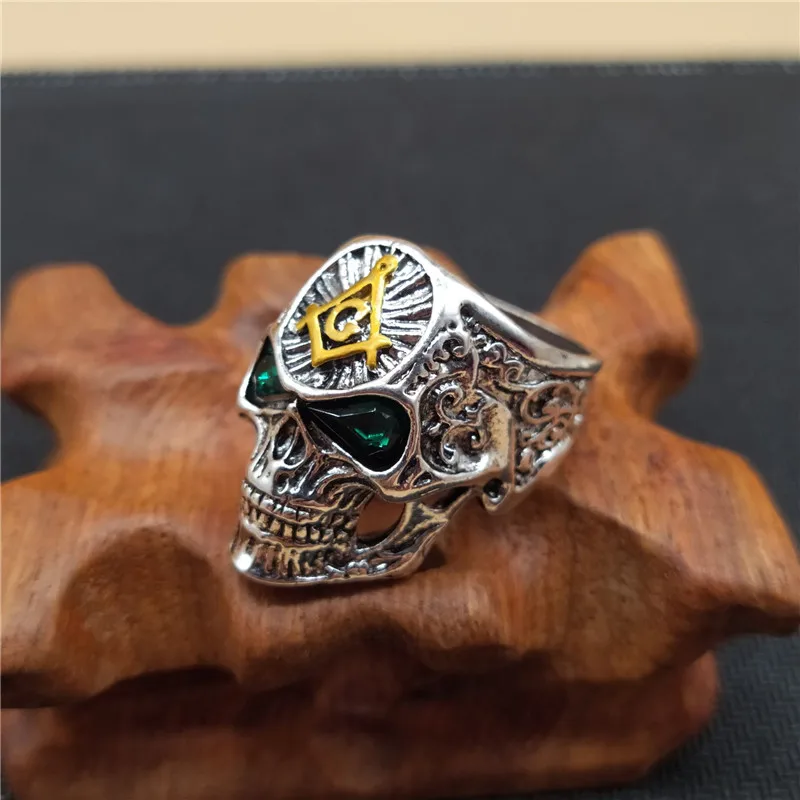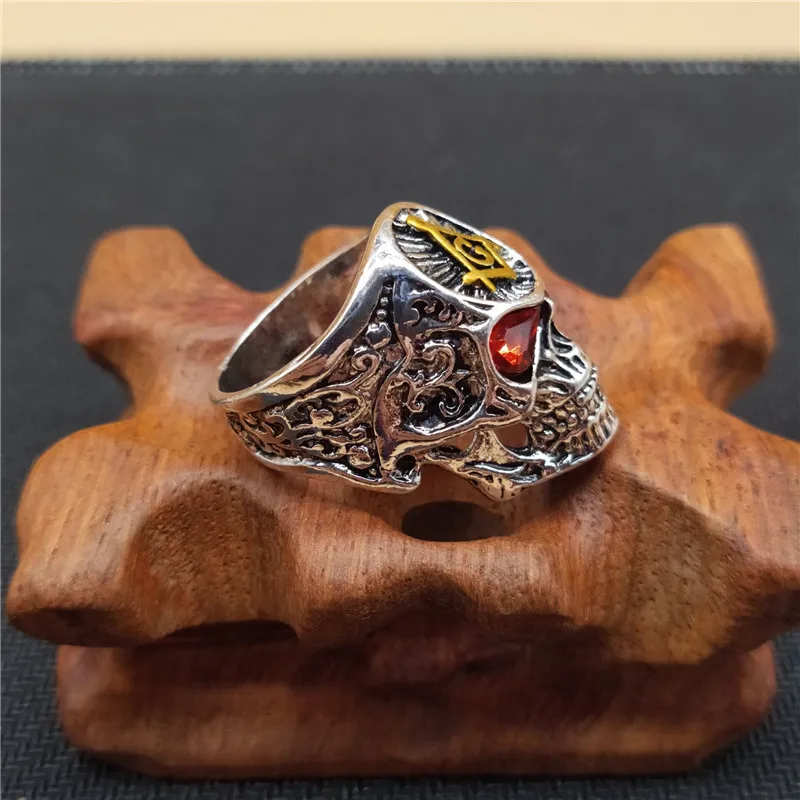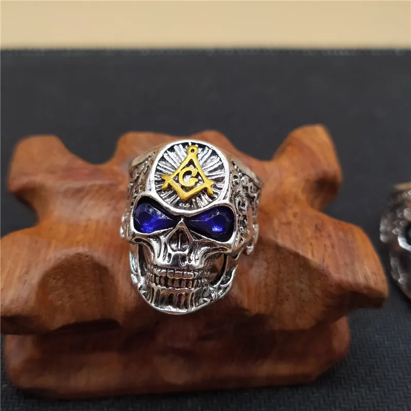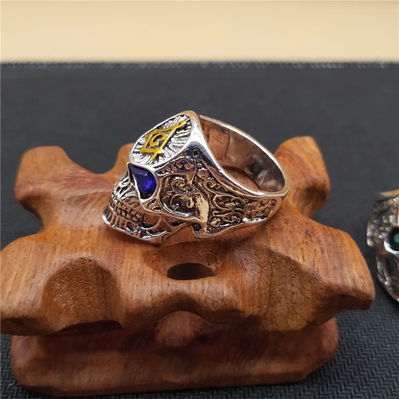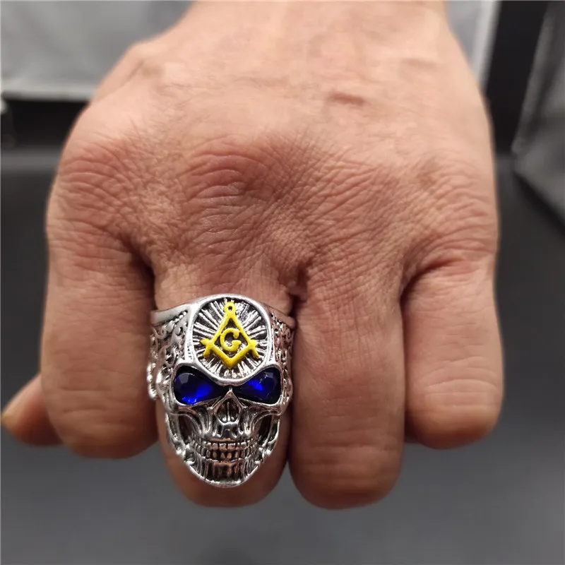 Unisex Punk Style Skull Masonic Ring with Colorful Eyes