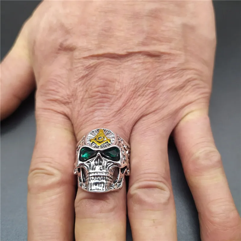 Unleash your inner rockstar with this jaw-droppingly awesome Unisex Punk Style Skull Masonic Ring. This ain’t just any ring - it’s like a mixtape of edgy vibes that’ll have your friends totally shook. Designed with intricate skeleton patterns and colorful eyes that pop like a neon sign at midnight, this flashy piece is all set to turn heads. Whether you’re hitting that weekend party or just out there living your best life, this ring has your back. Packed with all the punk, goth, and lit aesthetics, this statement piece is crafted from durable zinc alloy, ensuring it stays as bold as your Snapchat stories.