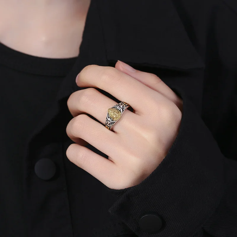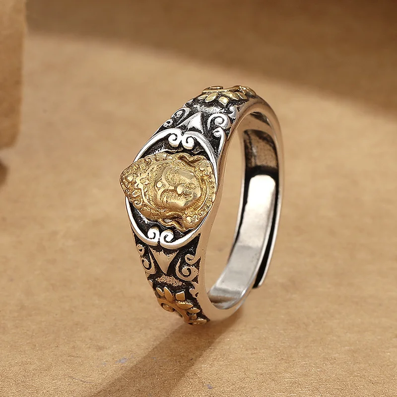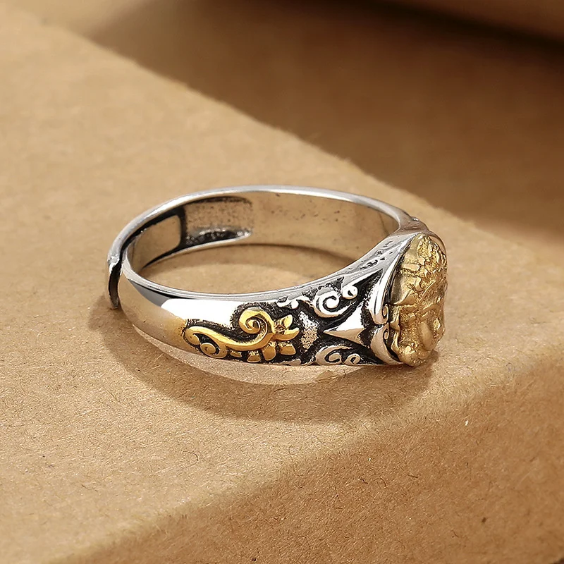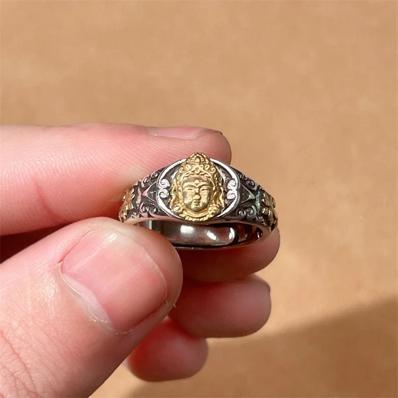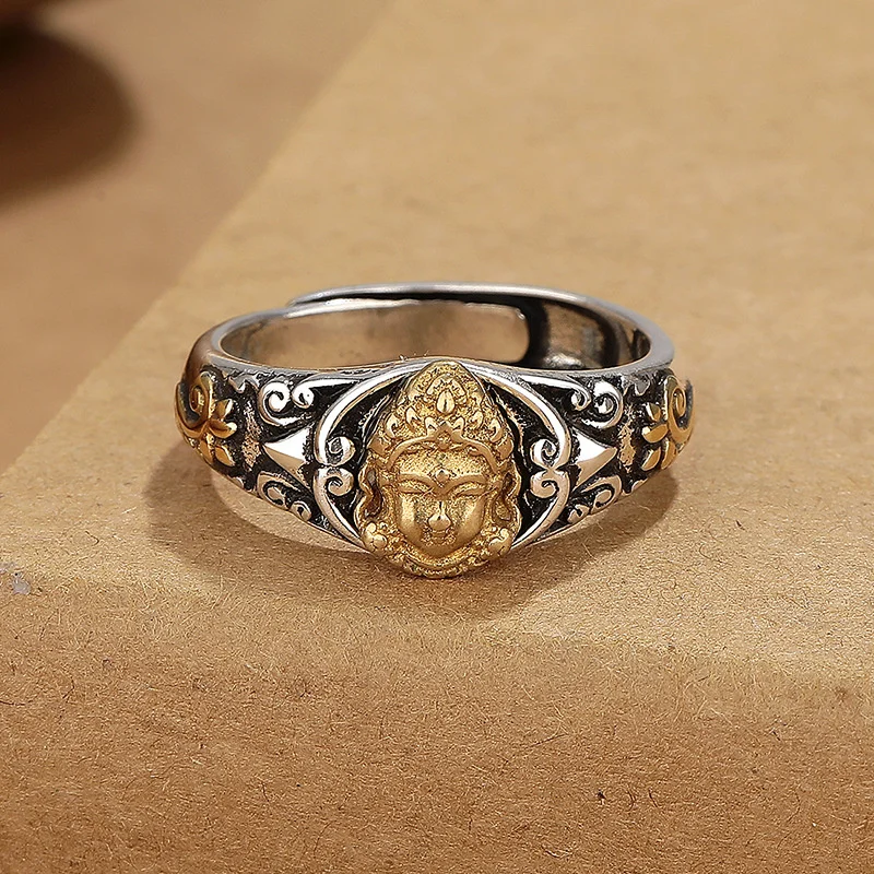 Vintage Gold Silver Collision Tara Pattern Ring For Men Jewelry Adjustable Trendy S925 Ring Male Index Finger Accessories