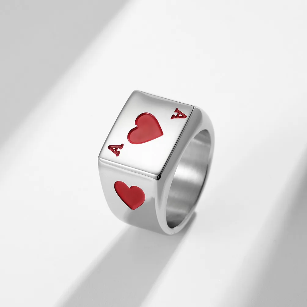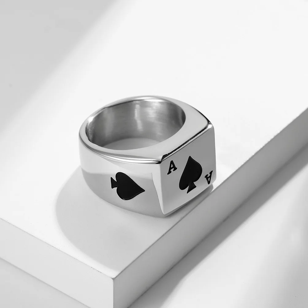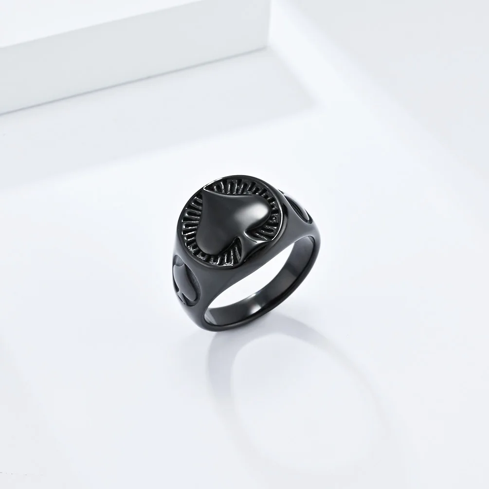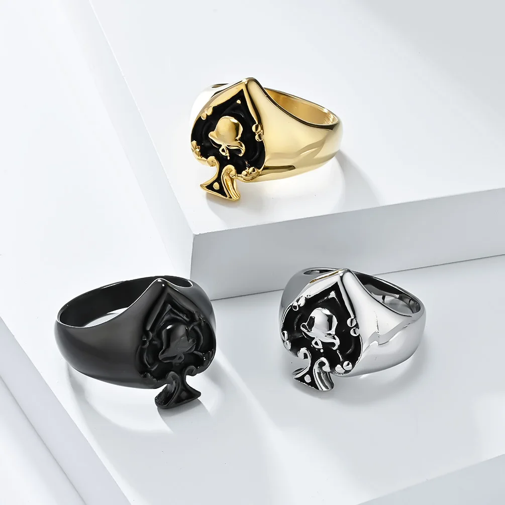 Yo, check this out, fam! If you're tryna level up your drip with some edgy vibes, say less 'cause this Vintage Skull Stainless Steel Poker Ring is IT. Crafted to straight-up slay, this ring is your new ace when it comes to flexing your style game. Picture rolling into a party with this bad boy—heads are gonna turn, no cap. It's not just a ring, it's a statement piece, a discourse in fashion culture blending the classic with the bold.
