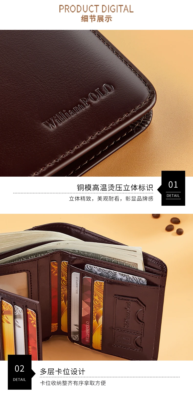 WILLIAMPOLO Slim RFID Leather Wallet for Men